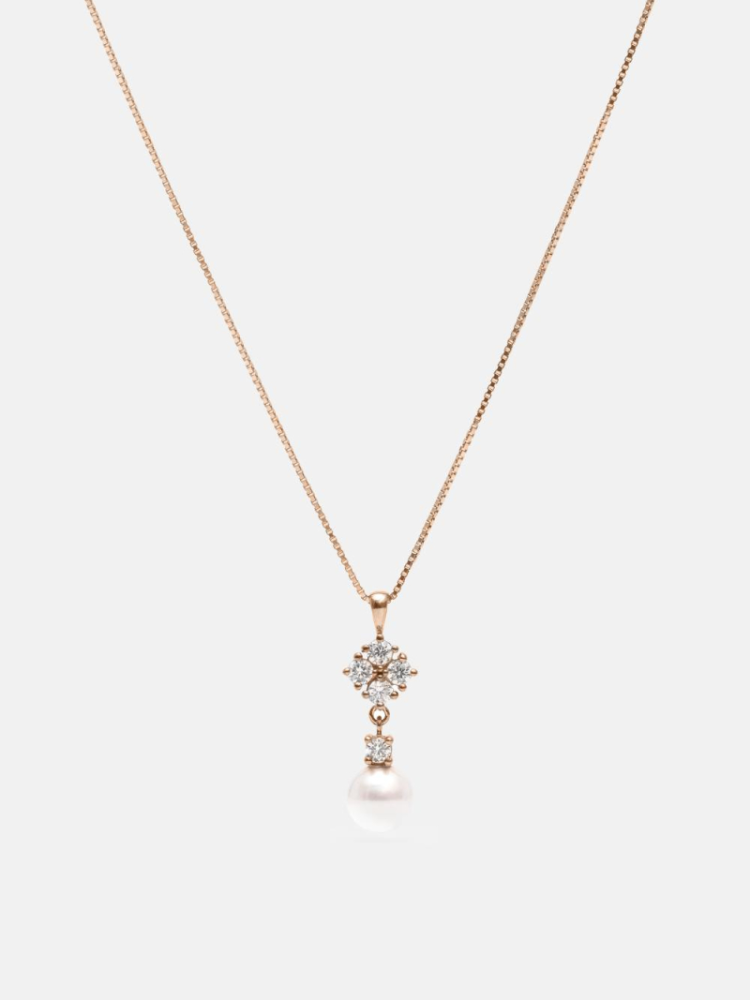 El collar Romy en oro rosa tiene un estilo cálido y romántico, con cristales suaves y una pequeña perla que se mueve con delicadeza. El tono rosa claro crea un look dulce que combina muy bien con colores claros y vestidos de encaje. Una bonita elección para novias con estilo romántico.