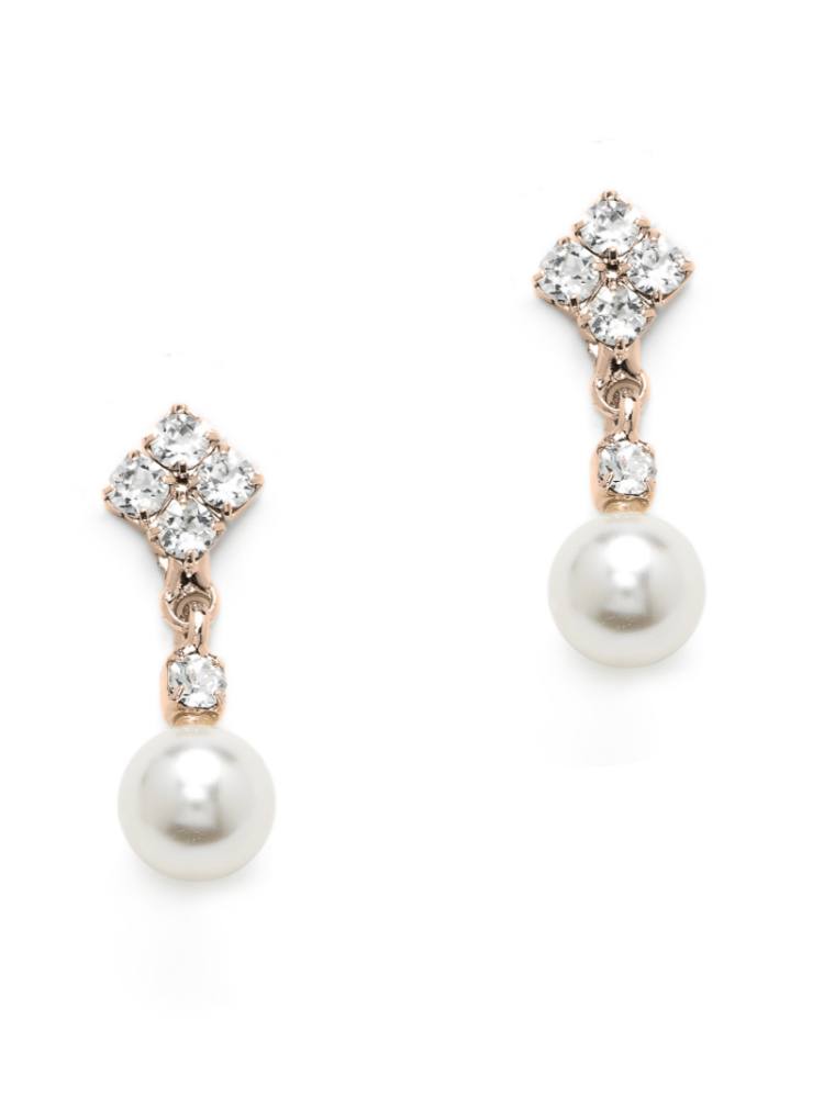 Los pendientes Romy son unos preciosos pendientes de boda hechos con perlas y delicados cristales en un engaste de plata 925 con baño de oro rosa.
