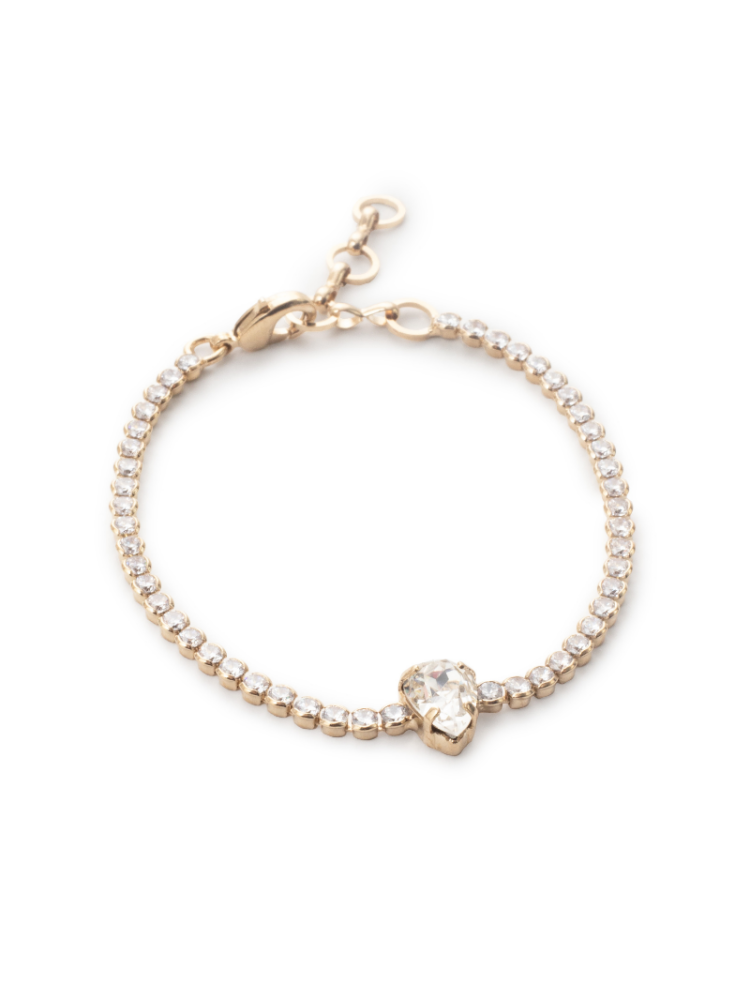 La pulsera Soraya es una pieza elegante y romántica con el cristal en forma de pera en el centro.