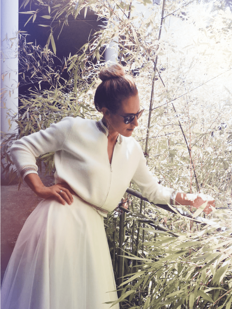Este precioso blusón de novia de diseño extravagante es perfecto para el día de su boda. La chaqueta de punto fino es de calidad suave, perfecta para una boda de invierno u otoño. El estilo del blusón se acentúa con las rayas de punto de hilo de lúrex dorado y plateado. Puedes cerrar la chaqueta de novia con una cremallera en la parte delantera como más te guste. La prenda de punto tiene un corte holgado y presenta finos puños en las mangas, el dobladillo y el cuello. Este extraordinario diseño es muy elegante y a la vez cheeky.