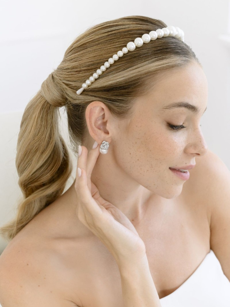 Romantic and eye-catching, the G.Westerleigh ER191 earrings are inspired by the beauty of blossoms. Sparkling Cubic Zirconia crystals form layered petals around a central stone, while a luminous ivory pearl completes the design with timeless grace. This combination of shimmer and softness makes them an ideal choice for brides who love both glamour and natural elegance. Crafted with rhodium plating and secured with a push-back closure, they ensure all-day comfort from ceremony to evening.