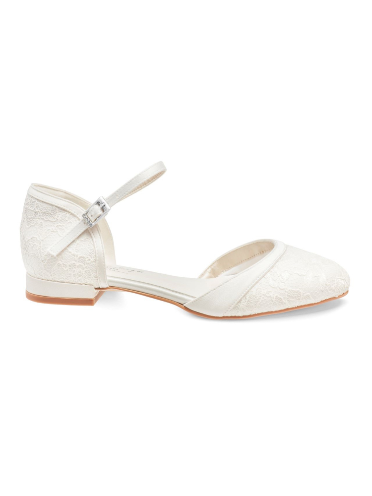 Lana es un exclusivo zapato de novia hecho a mano y de estilo clásico. Las sandalias están hechas de Satín con cordones y son muy cómodas gracias al tacón plano. ¡Esta sandalia de novia combina con cualquier vestido de novia!
