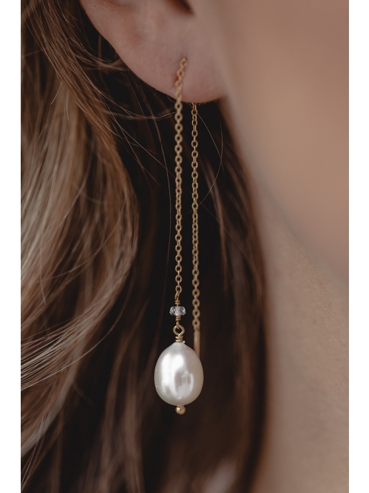 Llevar una joya que resuene con tu personalidad puede infundir una sensación de fuerza y confianza. Estos excepcionales pendientes calados, con una perla ovalada de agua dulce y un pequeño cristal de roca delicadamente tallado, combinan la elegancia clásica con un toque de sofisticación moderna.