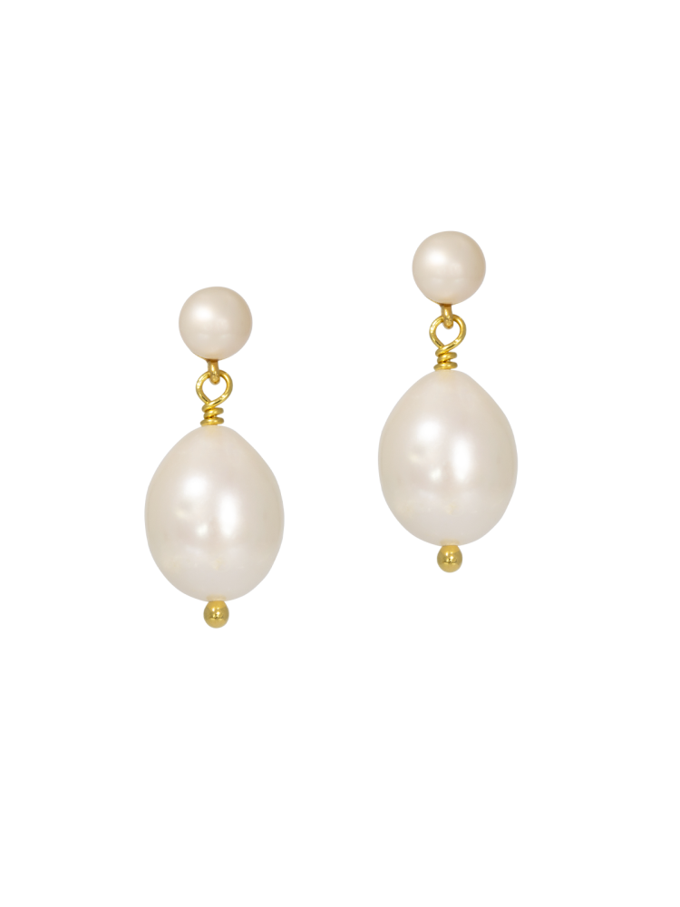 Un diseño impresionante para los entusiastas de las perlas: estos pendientes llevan pequeños pendientes redondos de perlas de agua dulce combinados con colgantes más grandes de perlas ovaladas de agua dulce.