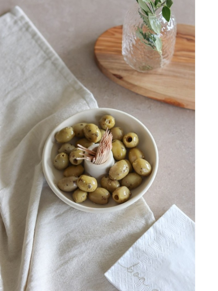 - Pensado para aceitunas y bocados, ideal para un brindis relajado