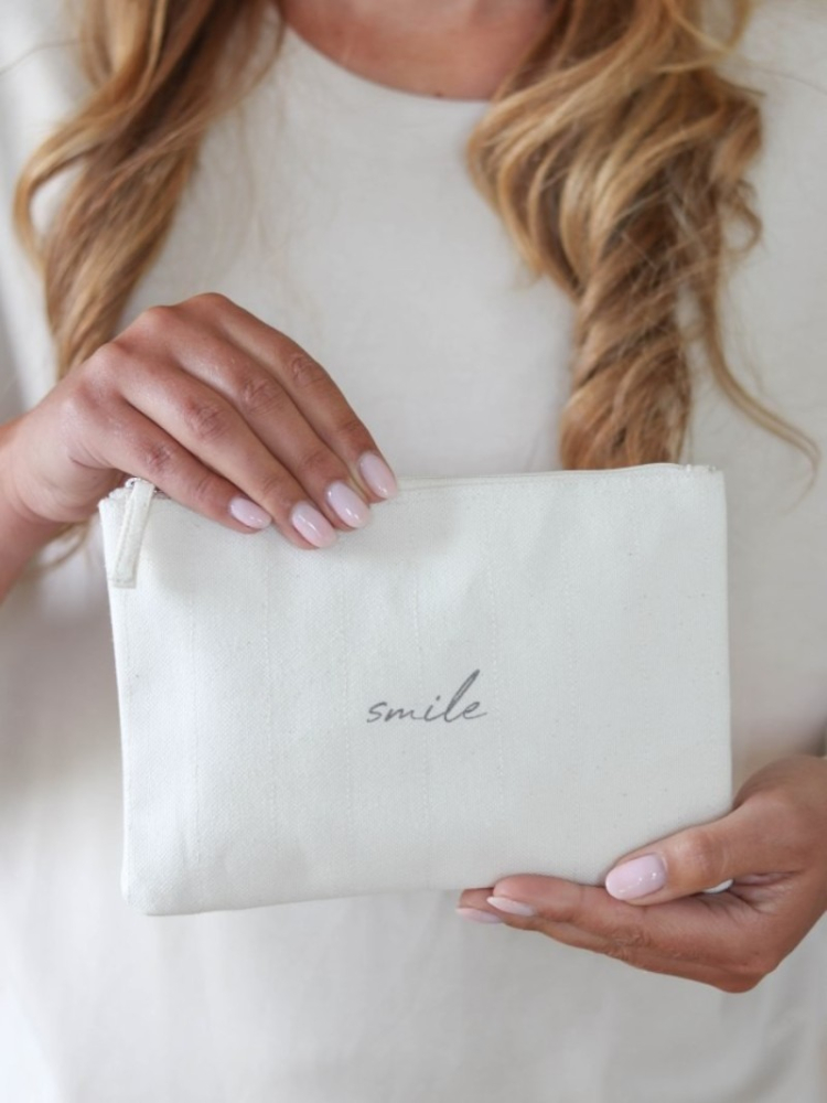 Reúne lo esencial y lo mantiene en orden, ya sean cosméticos, objetos personales o pequeños útiles de trabajo. El algodón orgánico y el acabado interior aportan calma, estilo y confianza en cada ocasión.
