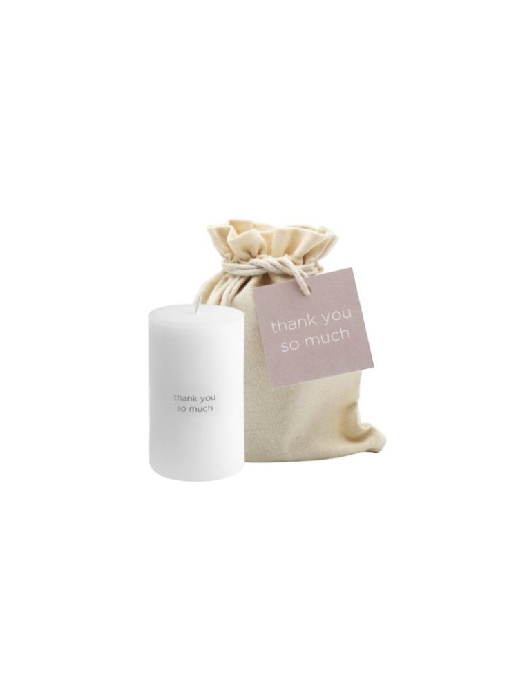 Vela cilíndrica en bolsa de regalo - Muchas gracias