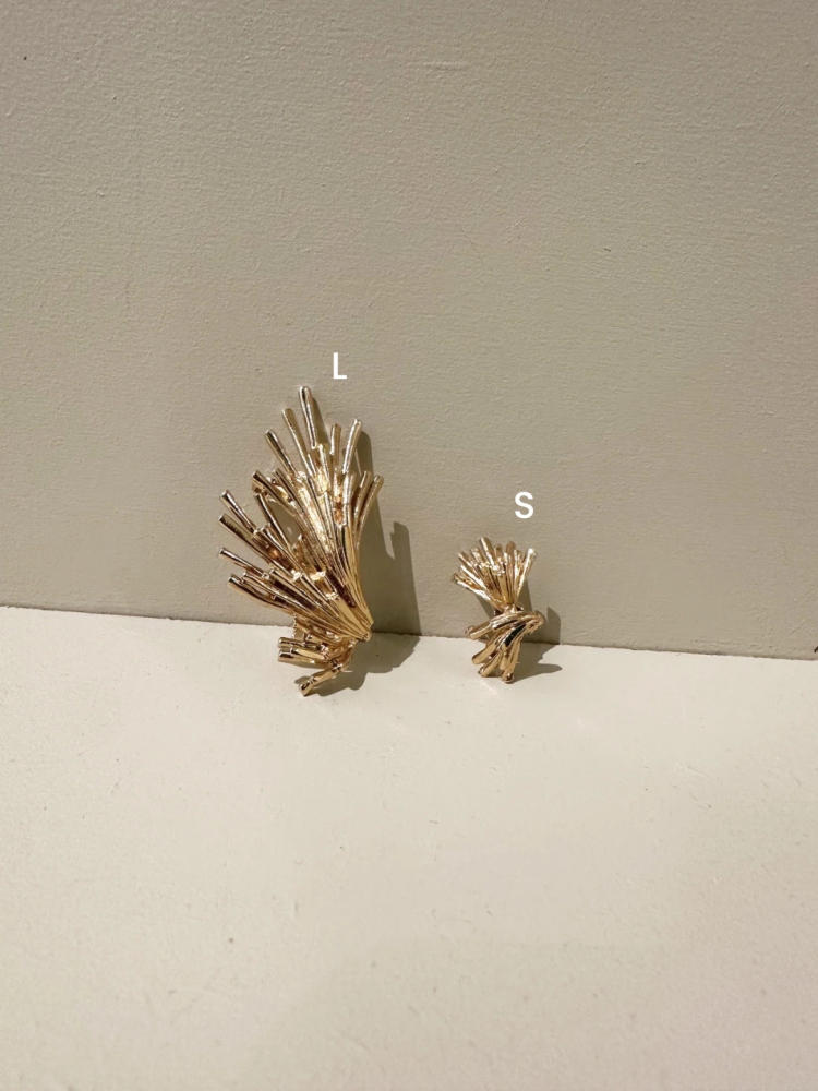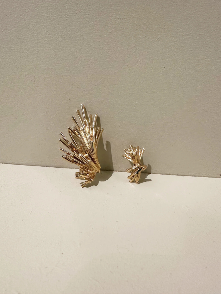 Los pendientes están diseñados para adaptarse a la forma natural de la oreja y se sujetan con un discreto cierre en la parte superior para mayor comodidad y estabilidad. Cada pieza está hecha a mano y acabada con un fino baño de oro, lo que le confiere un aspecto suave y luminoso. Los postes de plata ayudan a prevenir reacciones alérgicas, lo que permite llevarlos cómodamente durante todo el día.