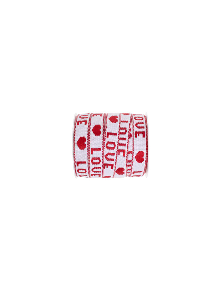 Eleva la decoración de tu boda, el envoltorio de regalos o tus manualidades nupciales con esta romántica cinta roja LOVE SX-8758. Fabricada en suave y duradera poliéster, la cinta presenta un encantador patrón de corazón rojo y "LOVE" tejido sobre un fondo blanco nítido. Con un ancho de 10 mm y una generosa longitud de 5 metros, es perfecta para envolver regalos para el cortejo nupcial, decorar cajas de favores, dar estilo a ramos o añadir toques conmovedores a cualquier celebración del amor. Un detalle dulce y elegante para bodas o compromisos.