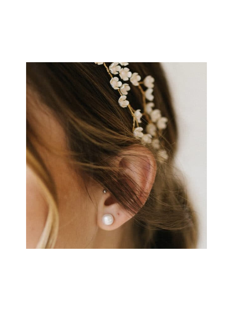 Elegantes y versátiles, los Pendientes de Madreperla de Sally Jane Bridal presentan perlas clásicas en montura de latón chapado en oro. Un imprescindible para novias que buscan una elegancia discreta, aportando un brillo sutil que completa cualquier look nupcial con sofisticación.